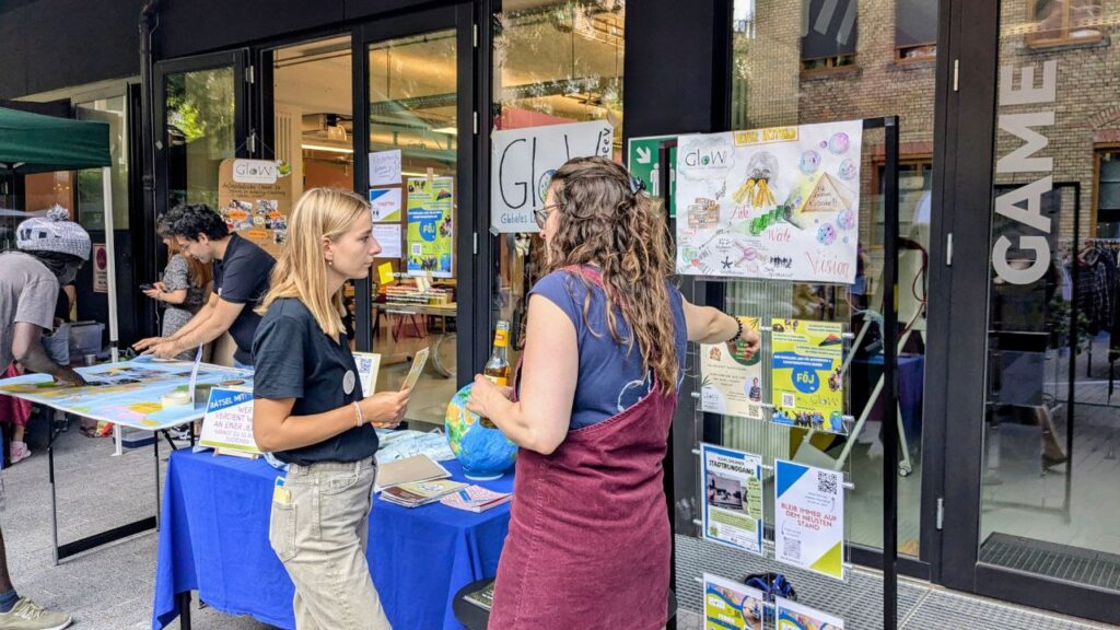 An unserem Stand von GloW konnten Interessierte die aktuellen Herausforderungen im Bereich der Menschenrechte entdecken. Besonders deutlich wurde dabei der große Unterschied zwischen den Lebensrealitäten im Globalen Norden und Globalen Süden. Gemeinsam diskutierten wir über konkrete Lösungsansätze, um diese Ungleichheiten im Alltag zu verringern.